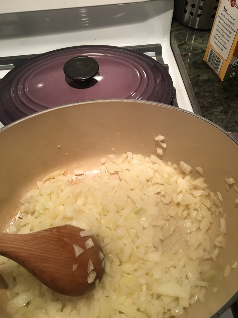 Onions cooking in dutch oven